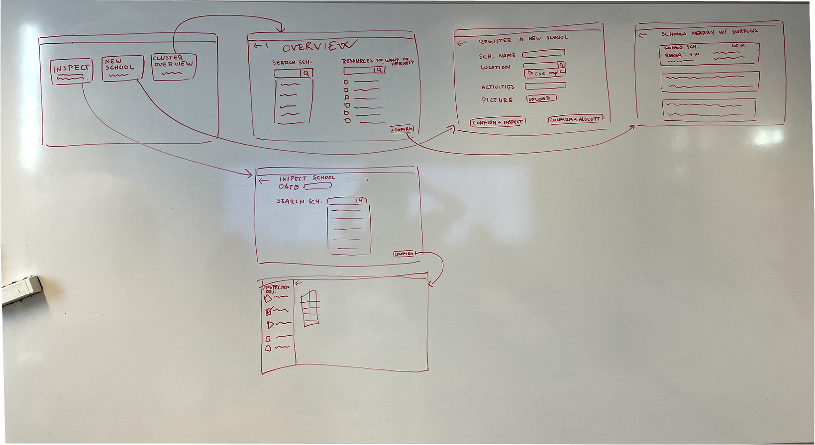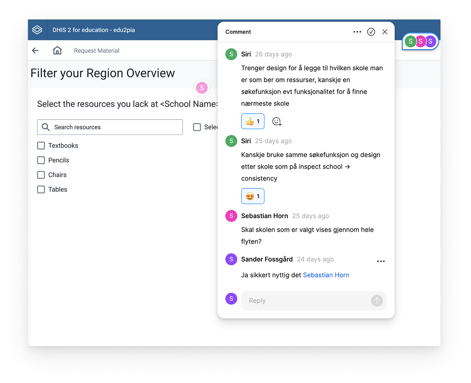 Selv om vi hadde lite direkte brukerinvolvering og kun en beskrivelse av en typisk bruker, jobbet vi kontinuerlig med å utfordre og forbedre designet. Vi evaluerte løsningene kritisk i teamet, diskuterte alternative tilnærminger og justerte prototypene fortløpende. Denne iterative prosessen gjorde at vi oppdaget svakheter tidlig, forbedret brukerflyten og utviklet en løsning som i større grad støttet skoleinspektørenes behov.
