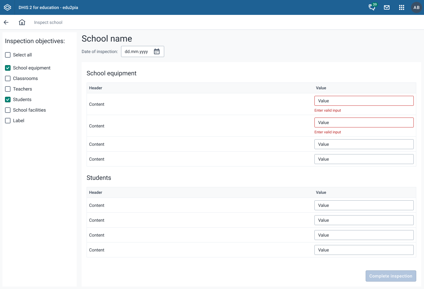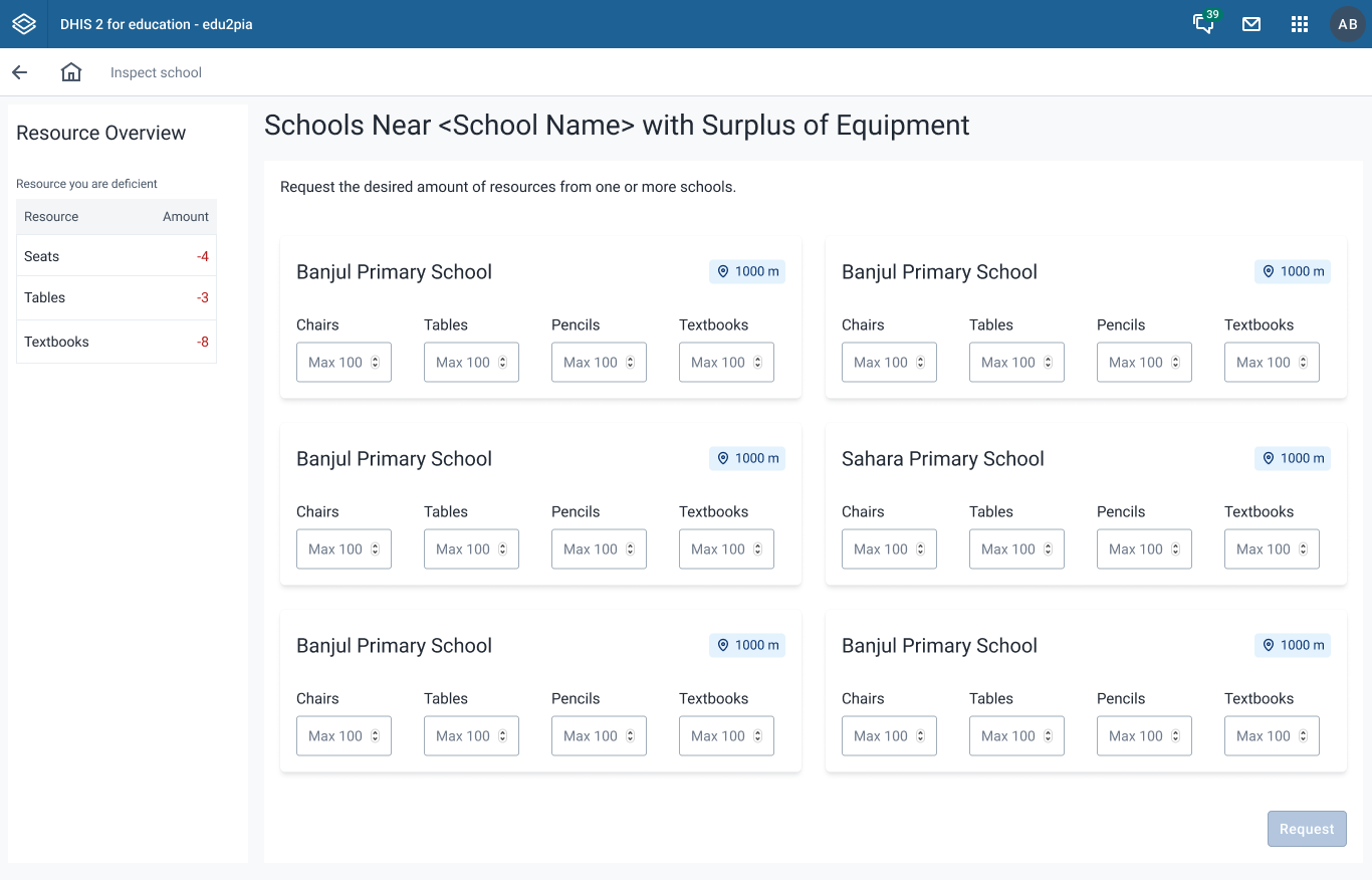 Vi fikk i oppdrag å designe og utvikle en webbasert løsning på DHIS2-plattformen som kunne støtte arbeidet til skoleinspektører i den fiktive verden Edutopia.